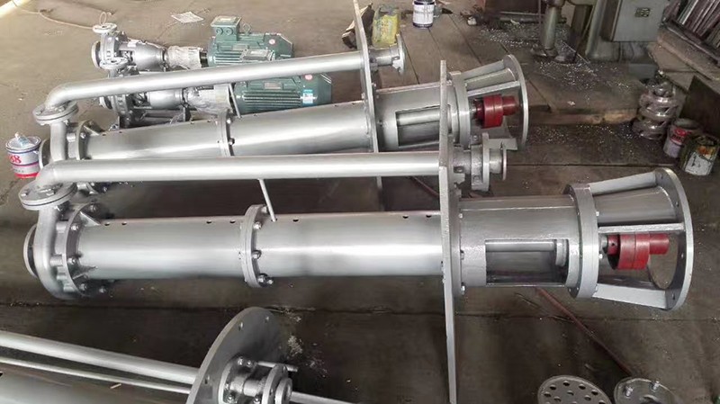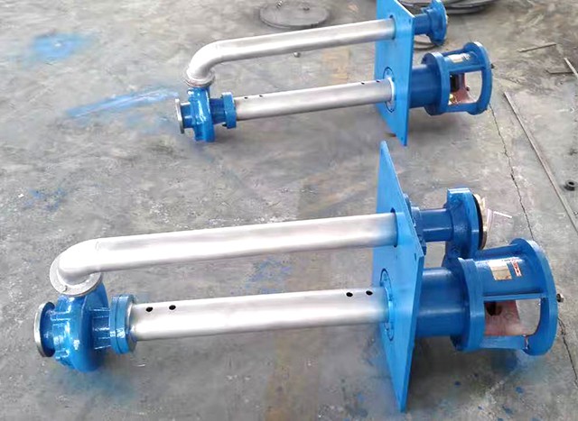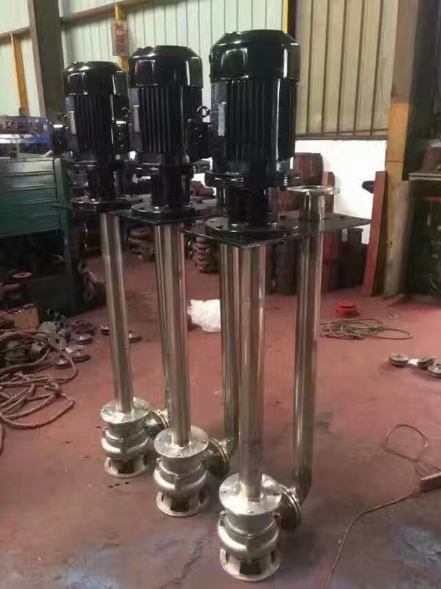 液下化工泵的形式為長軸立式離心泵,與介質接觸部分采用鑄鋼或不鏽鋼製造,根據客戶要求液下深度由0.5m-6m不等,工作部分淹沒與液體中,具有使用範圍廣,效率高,無需灌液即能輸送,由於泵運轉產生的軸向力及徑向力分別由液上部分的滾動軸承和液下的滑動軸承支撐,因此運行寧靜無噪音,是集環保節能的高科技產品。